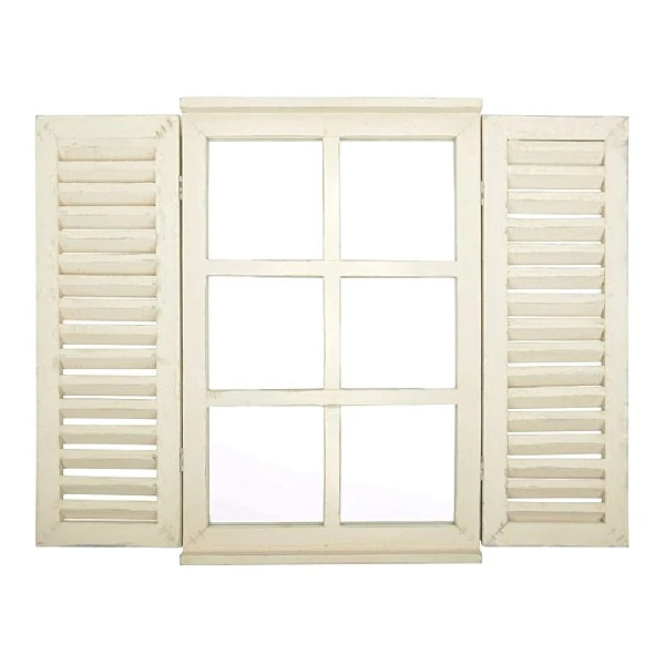 - Channel the rural chic French aesthetic with this beautiful distressed wood framed mirror with moveable shutters